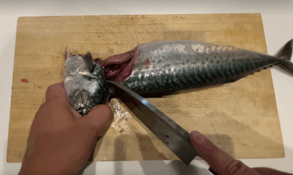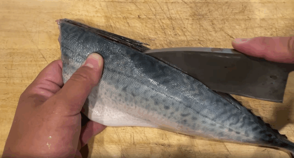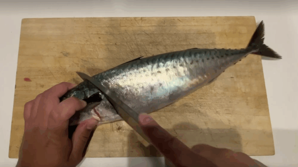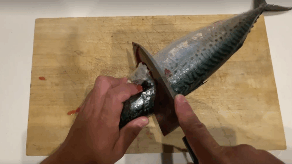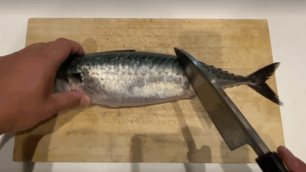 • ゴマサバを一口大にぶつ切りに切り分けます
