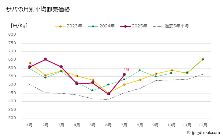 ゴマサバの価格はマサバの価格の約半分と言われています。以下は豊洲市場におけるマサバの卸売りの価格相場です。