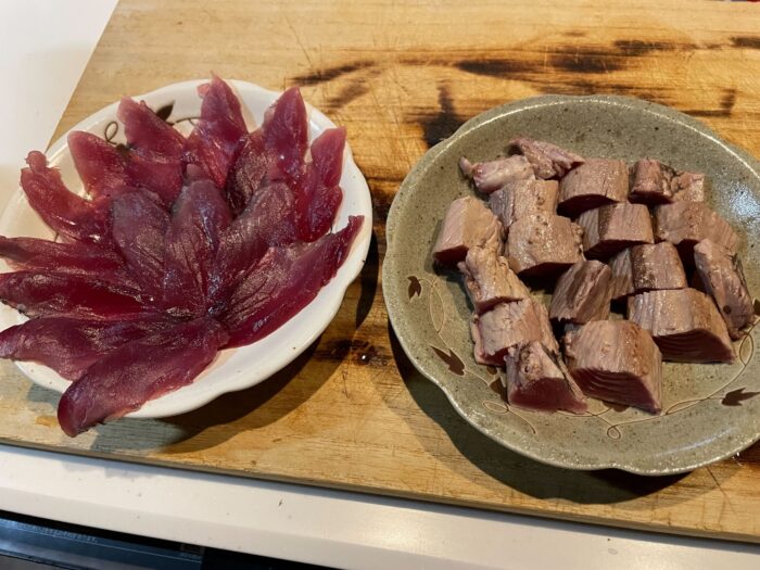 - ソウダガツオを一口大に切り分けます